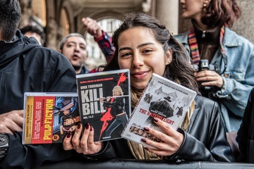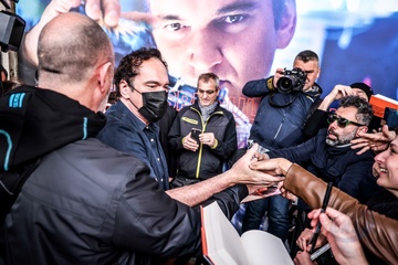Quentin Tarantino podpisuje ksiazke Cinema Speculation