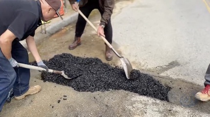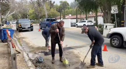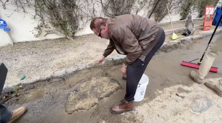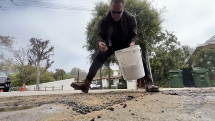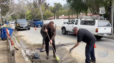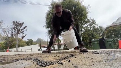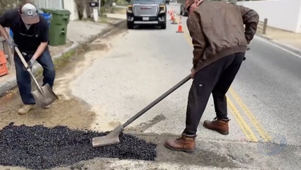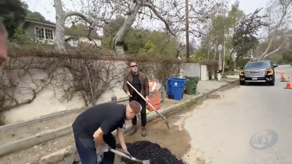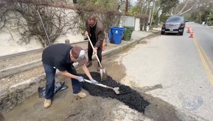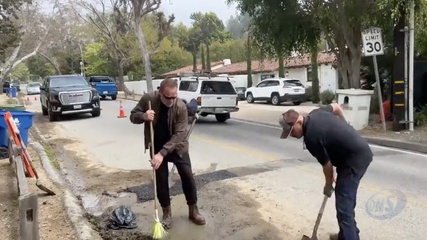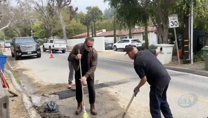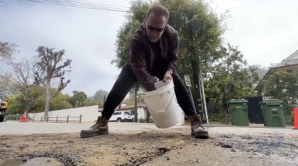Arnold Schwarzenegger naprawia dziure na swojej ulicy_