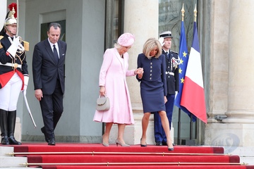 Karol III Camilla Macron wyjscie Palac Elizejski