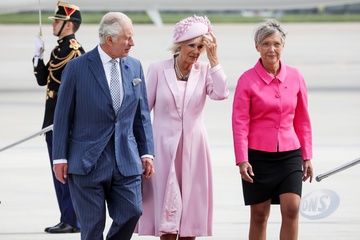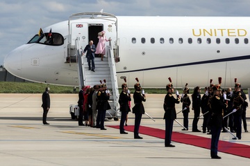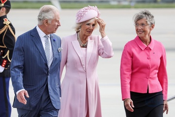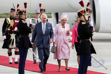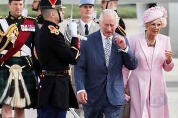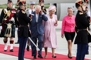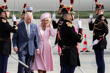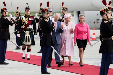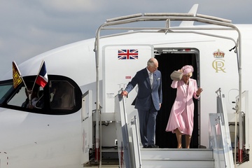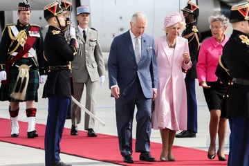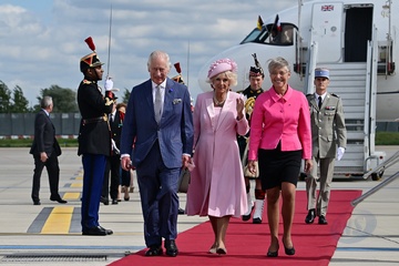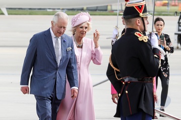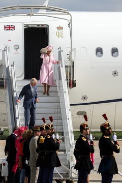 Krol Karol Camilla na lotnisku w Paryzu