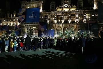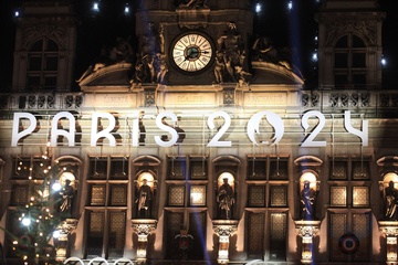 paryski ratusz udekorowany w barwach igrzysk olimpijskich Paris 2024