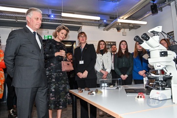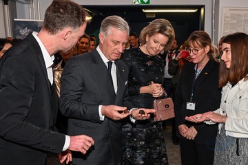 Le roi Philippe et la reine Mathilde de Belgique en visite au Centre aérospatial allemand à Berlin, à l'occasion de leur voyage officiel de trois jours en Allemagne
