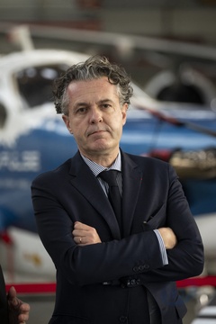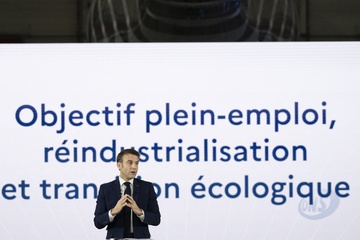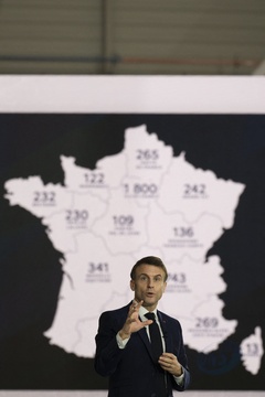 Le président Emmanuel Macron visite le site de Airbus à Toulouse à l'occasion des deux ans du plan d'investissement France 2030