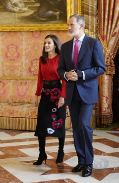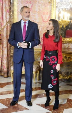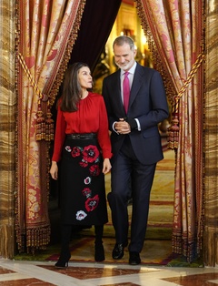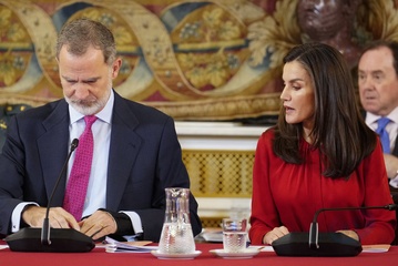 Król Felipe VI i królowa Letizia podczas spotkania zarządu Fundacji Księżnej Girony w Pałacu Królewskim w Madrycie