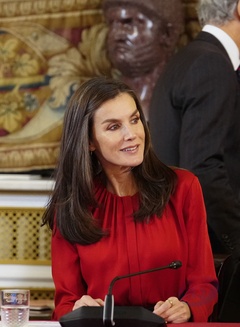 Le roi Felipe VI et la reine Letizia lors de la réunion du conseil d'administration de la Fondation Princesse de Gérone, au Palais Royal à Madrid