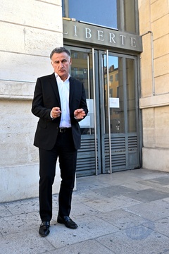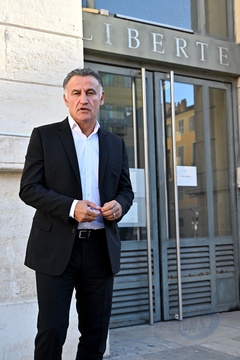 Christophe Galtier, l'ancien entraîneur de l'OGC Nice, accompagné par ses avocats, maîtres Sébastien Schapira et Olivier Martin, comparaît devant le tribunal correctionnel de Nice