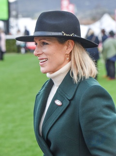 Zara Tindall na grudniowych wyścigach, tor wyścigowy Cheltenham, Gloucestershire, Wielka Brytania