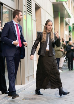 Rodzina królewska Hiszpanii opuszcza restaurację Pa-Bu w Madrycie z okazji 60. urodzin hiszpańskiej księżniczki Eleny