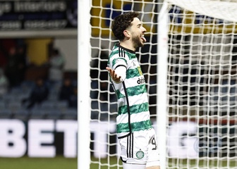 Dundee kontra Celtic w meczu Premiership Mikey Johnston z Celticu (po lewej) świętuje zdobycie drugiego gola dla swojej drużyny z Mattem OŐR