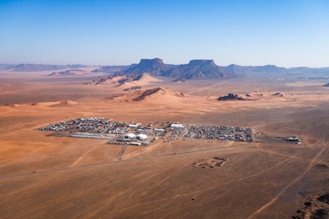 Vue aérienne du bivouac du Dakar 2024 lors des Vérifications administratives et techniques à Al-Ula en Arabie Saoudite