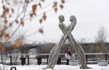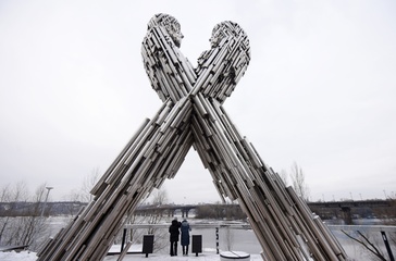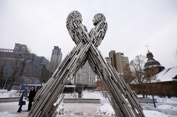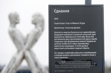 Unity sculpture on Dnipro embankment in Kyiv