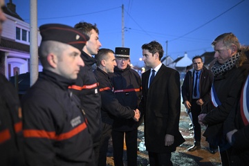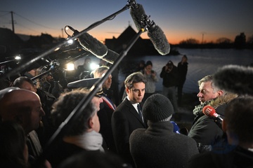 Le nouveau Premier ministre Gabriel Attal lors de son première déplacement dans le village de Clairmarais