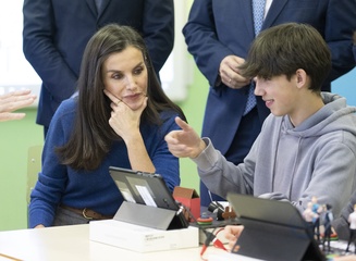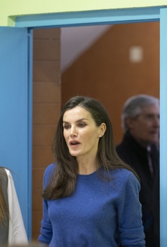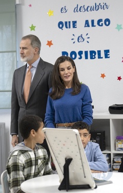 Le roi Felipe VI et la reine Letizia d'Espagne en visite dans l'école primaire "Gumersindo Azcarate" à Léon en Espagne