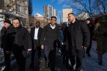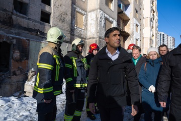 Premier Wielkiej Brytanii Rishi Sunak odwiedza zbombardowane domy