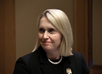 Penny Pritzker prowadzi konferencję prasową w Kijowie