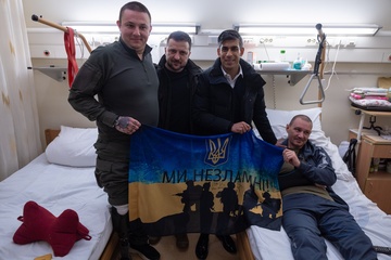 Premier Wielkiej Brytanii Rishi Sunak z wizytą w szpitalu wojskowym na Ukrainie