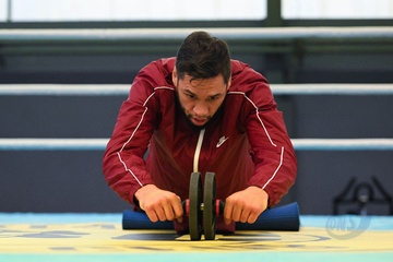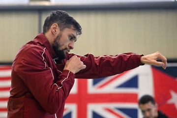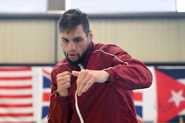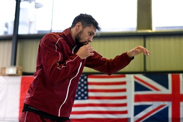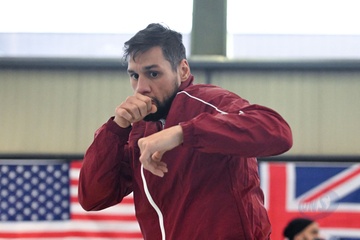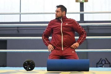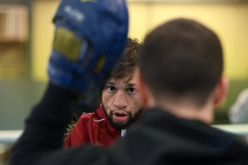 Bokser Ahmed El Mousaoui trenuje na siłowni IBC Boxing w Champs sur Marne