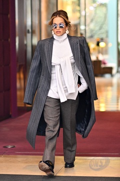 Rita Ora opuszcza hotel Costes, aby udać się na pokaz Diora podczas Tygodnia Mody w Paryżu