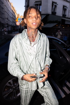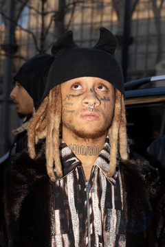 Les célébrités à la sortie du défilé Amiri "Collection Prêt-à-Porter Automne/Hiver 2024-2025" lors de la Fashion Week de Paris (PFW)