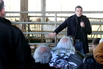 Jordan Bardella, przewodniczący Zlotu Narodowego, odwiedza rolników w Queyrac