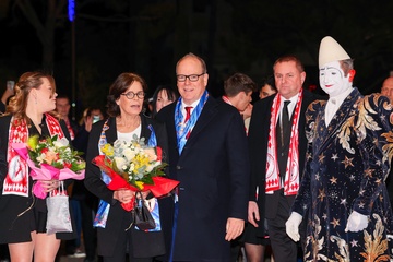 Księżniczka Stéphanie z Monako, książę Monako Albert II, Camille Gottlieb i Louis Ducruet przybywają na 46. Międzynarodowy Festiwal Cyrkowy w Monte-Carlo 17