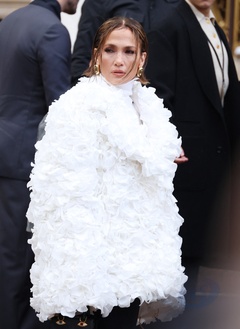 Jennifer Lopez arrive au défilé Schiaparelli Haute Couture Printemps/Été 2024 dans le cadre de la Fashion Week de Paris