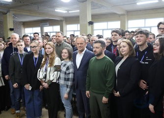 Volodymyr Zelenskyy and Donald Tusk meet with students in Kyiv