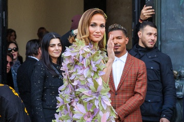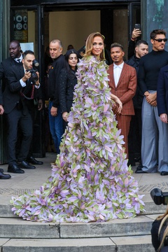 Jennifer Lopez (JLo) pojawia się na pokazie Elie Saab Haute Couture wiosna/lato 2024 w ramach Tygodnia Mody w Paryżu