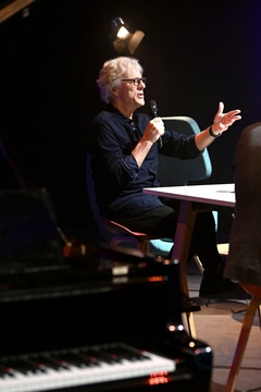 Stewart Copeland z grupy Police na zajęciach mistrzowskich ze studentami z kampusu Georges-Méliès w Cannes podczas MIDEM+24
