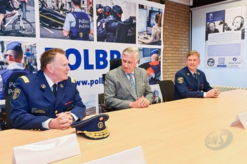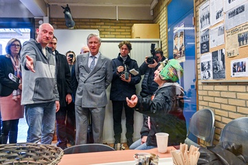Le roi Philippe de Belgique en visite à une équipe de la zone de police de Bruxelles Capitale-Ixelles, Herscham Team, qui vient en aide principalement aux sans-abris