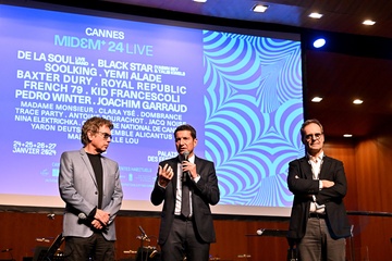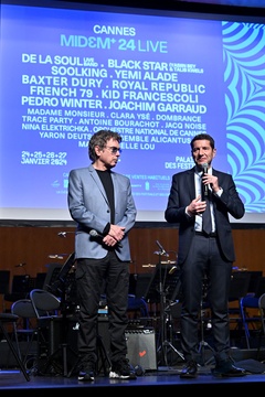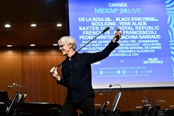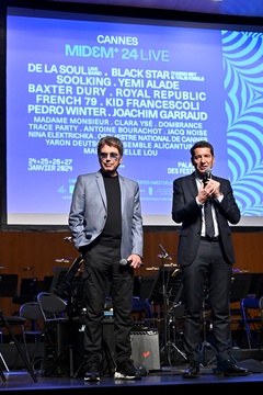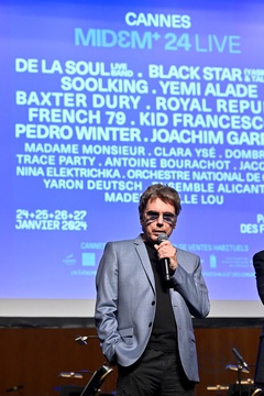 Jean-Michel Jarre lors de la soirée d'ouverture du MIDEM+24 au Palais des Festivals à Cannes