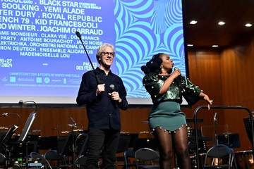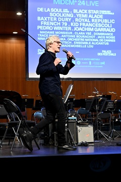 ean-Michel Jarre podczas wieczoru otwarcia MIDEM+24 w Palais des Festivals w Cannes
