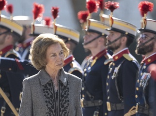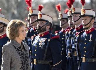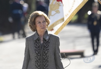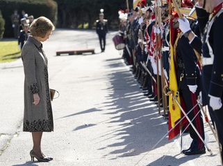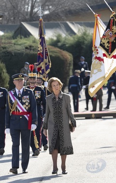 La reine Sofia lors de l'acte de serment devant le drapeau à la caserne "El Rey" de la Garde royale à Madrid