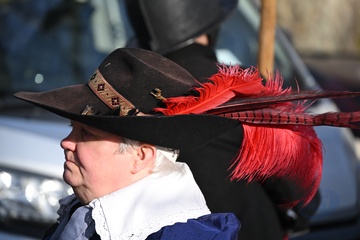 Rekonstruktorzy angielskiej wojny domowej maszerują wzdłuż centrum handlowego do Horseguards w Londynie, Wielka Brytania, 28 stycznia 2024 r.