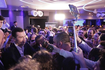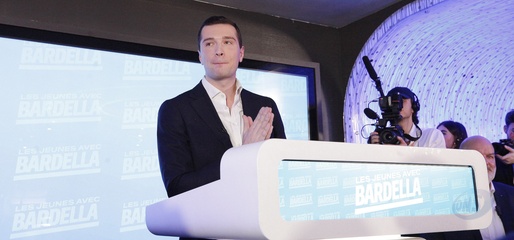 Szef Zjednoczenia Narodowego Jordan Bardella na imprezie inaugurującej „Youth with Bardella” w klubie Le Duplex w Paryżu
