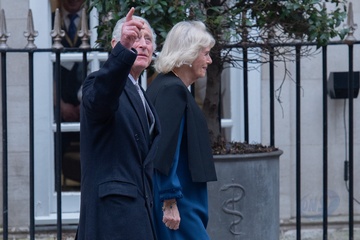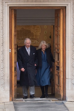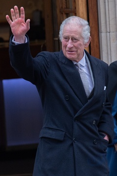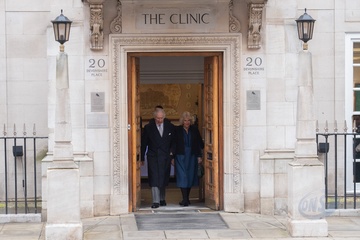 Krol Karol III wychodzi za szpitala London Clinic, London