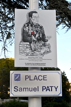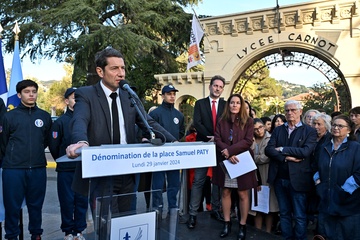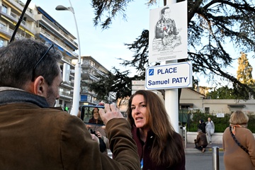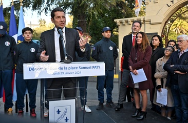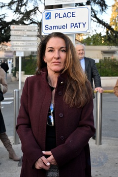 Mickaëlle Paty, siostra Samuela Paty’ego, wraz z burmistrzem Davidem Lisnardem nadaje nazwę Place Samuel Paty w Cannes