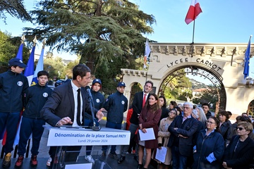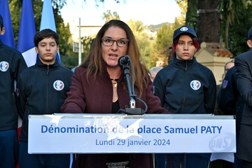 Mickaëlle Paty, la soeur de Samuel Paty, inaugure la place Samuel Paty à Cannes avec le maire David Lisnard