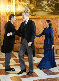 Król Hiszpanii Filip VI i królowa Letycja podczas corocznego przyjęcia z ambasadorami w Pałacu Królewskim w Madrycie” 51