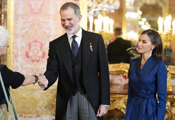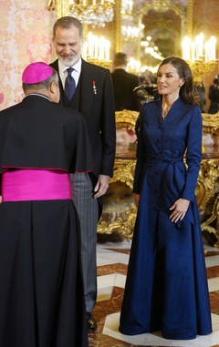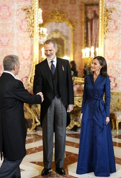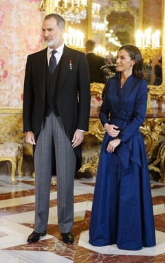 Le roi Felipe VI et la reine Letizia d'Espagne lors de la réception annuelle avec les ambassadeurs au palais royal à Madrid