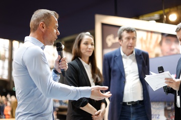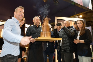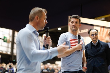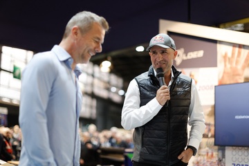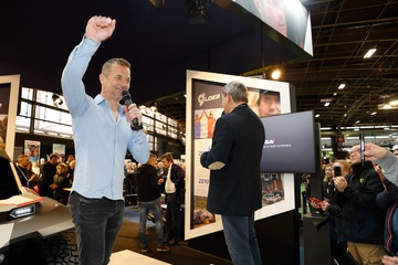 Sébastien Loeb fête ses 50 ans lors du salon Rétromobile 2024 au Paris Expo Porte de Versailles à Paris