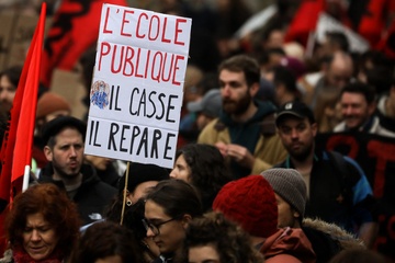 Nauczyciele biorą udział w demonstracji zorganizowanej przez francuskie związki oświatowe na rzecz podniesienia wynagrodzeń i warunków pracy w Paryżu. 21