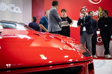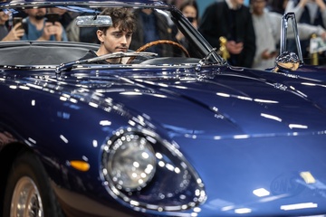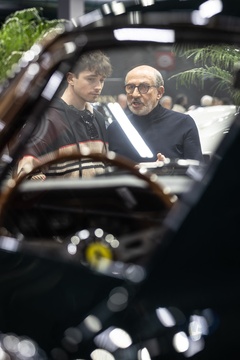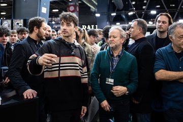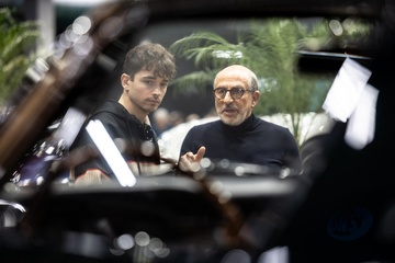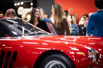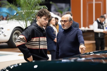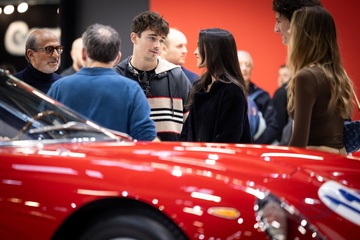 Le pilote Charles Leclerc et sa compagne Alexandra Saint Mleux font un passage au salon Rétromobile 2024 à Paris