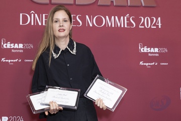 Photocall des participants au dîner des nommés des César 2024 au Fouquet's Paris