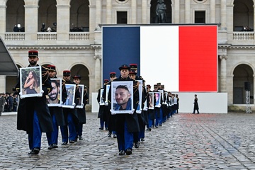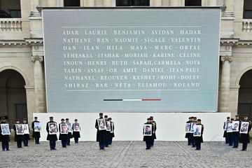 Narodowa ceremonia oddania hołdu francuskim ofiarom ataków terrorystycznych z 7 października w Izraelu na głównym dziedzińcu Hôtel National des Invalides” 14