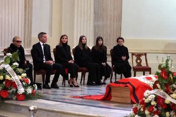 Książę Emmanuel-Philibert Sabaudii uczestniczy w stypie pogrzebowej swojego ojca, księcia Victora-Emmanuela Sabaudzkiego, w kościele Sant'Uberto w Turynie. 6