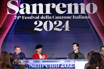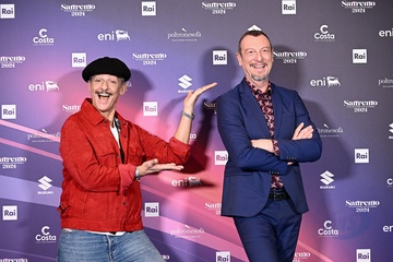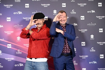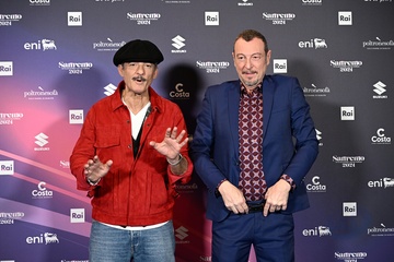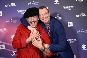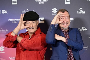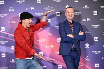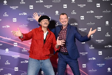 Amadeus and Rosario Fiorello during a photocall on the occasion of the 74th Sanremo Italian Song Festival, in Sanremo, Italy, 10 February 2024.