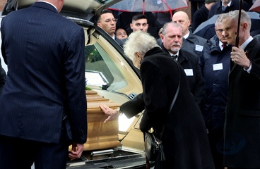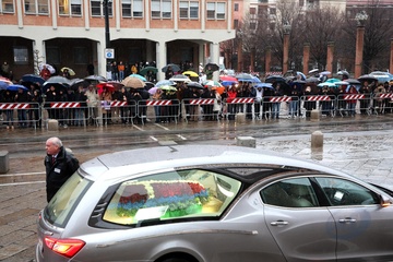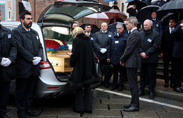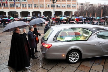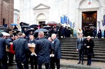 Wyjście z pogrzebu księcia Wiktora Emanuela Sabaudzkiego w bazylice Superga niedaleko Turynu