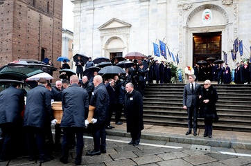 Sorties des funérailles du prince Victor Emmanuel de Savoie en la basilique de Superga près de Turin