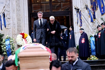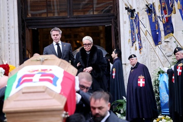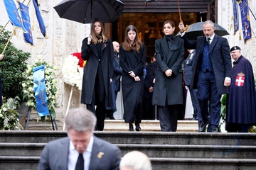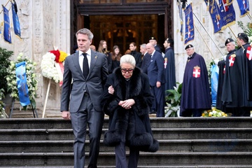Wyjście z pogrzebu księcia Wiktora Emanuela Sabaudzkiego w bazylice Superga niedaleko Turynu